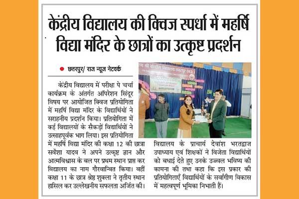 MVM-1, Chhatarpur students have been selected for state-level camp participation in VIDYARTHI VIGYAN MANTHAN 2023-24.