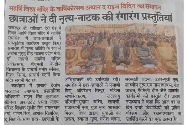 Maharishi Vidya Mandir honoured the talents of social and educational field.