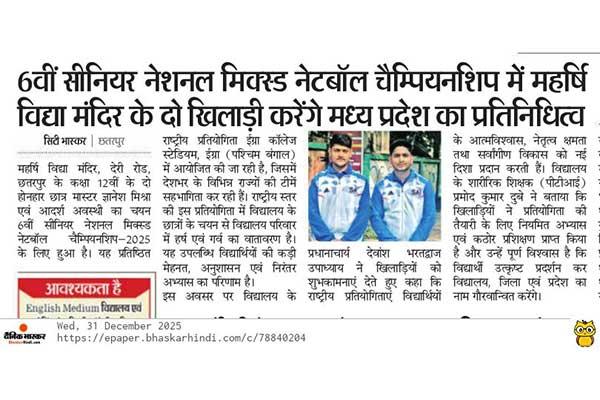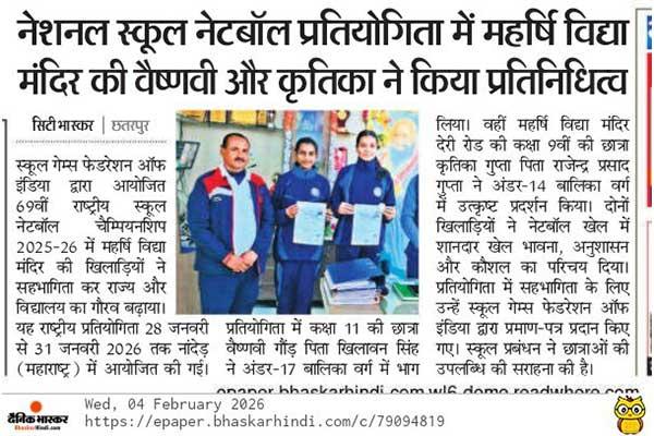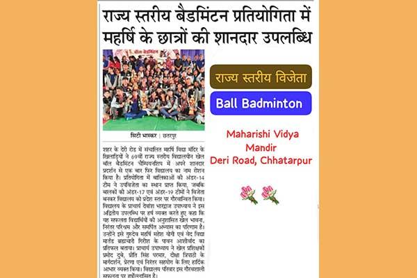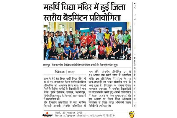 A District-Level Badminton Tournament was successfully organized at Maharishi Vidya Mandir, Deri Road, Chhatarpur.