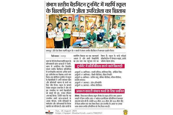 Players of Maharishi Vidya Mandir, Deri Road, Chhatarpur achieved the title of runner-up in the divisional level badminton tournament